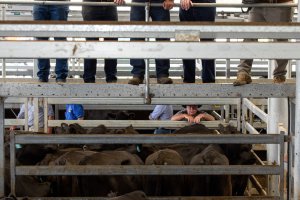 A quick catchup before the start of the Premium Weaner sales at NVLX, North Victoria Livestock Exchange (Jan 2017). © Simon Bayliss